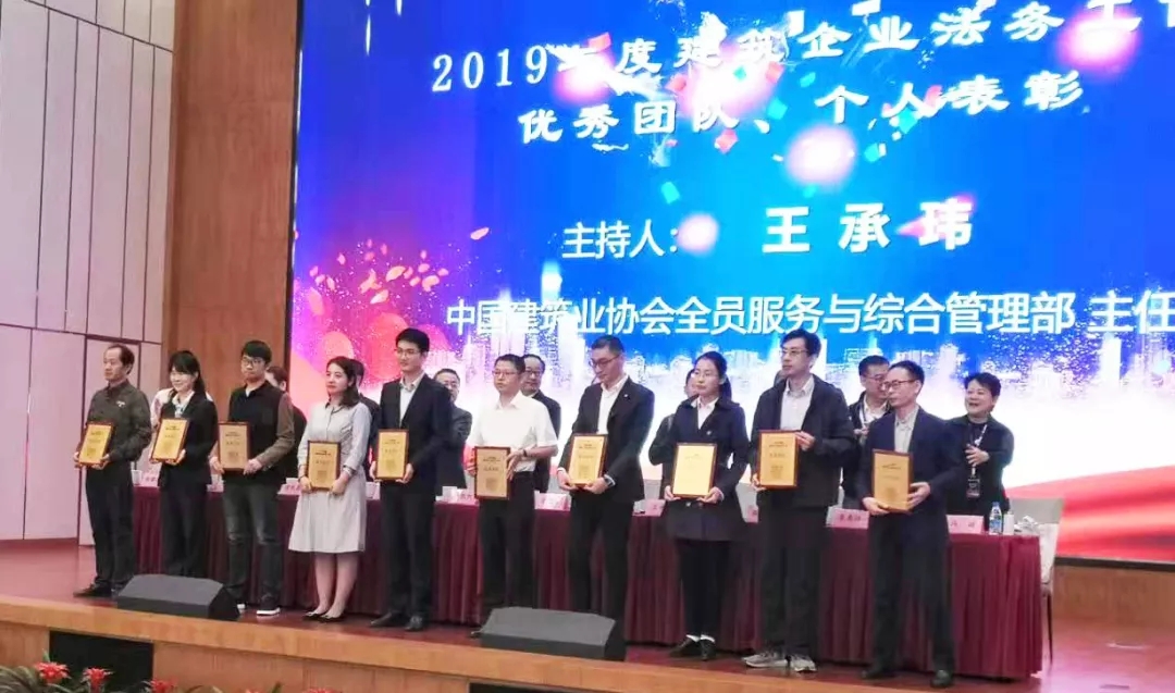 2019-10-26 我集團法務(wù)部榮獲“2019年度華東地區(qū)建筑企業(yè)優(yōu)秀法務(wù)團隊”稱號 10月25日,在華東地區(qū)六省市建協(xié)和建筑時報共同舉辦的“第四屆建筑企業(yè)法務(wù)工作(金雞湖)論壇會上,我集團法務(wù)部榮獲“2019年度華東地區(qū)建筑企業(yè)優(yōu)秀法務(wù)團隊”稱號。集團副總裁涂勇偉代表我司出席本次...