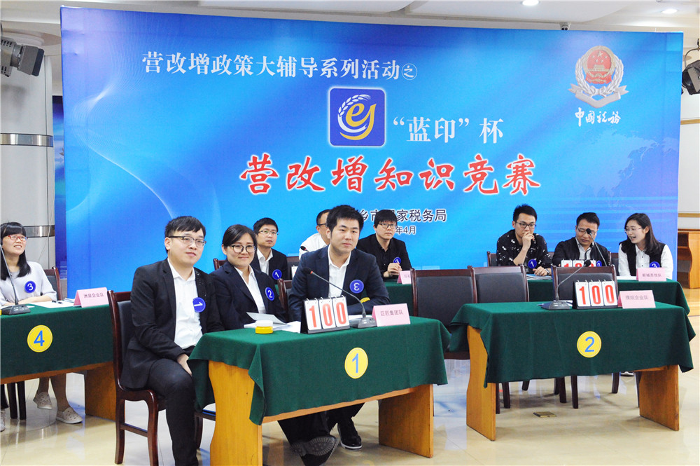 2017年4月25日下午,由桐鄉國稅局舉辦的營改增知識競賽在國稅局大樓9樓會議室如火如荼進行。本次競賽由桐鄉國稅局副局長高海群、政策法規科科長沈建學、副科長彭國強組成評委團。比賽共有七支隊伍參加比賽,分別是巨匠集團、巨石集團、濮院企業隊、石門企業隊、洲泉企業隊、烏鎮旅游隊。