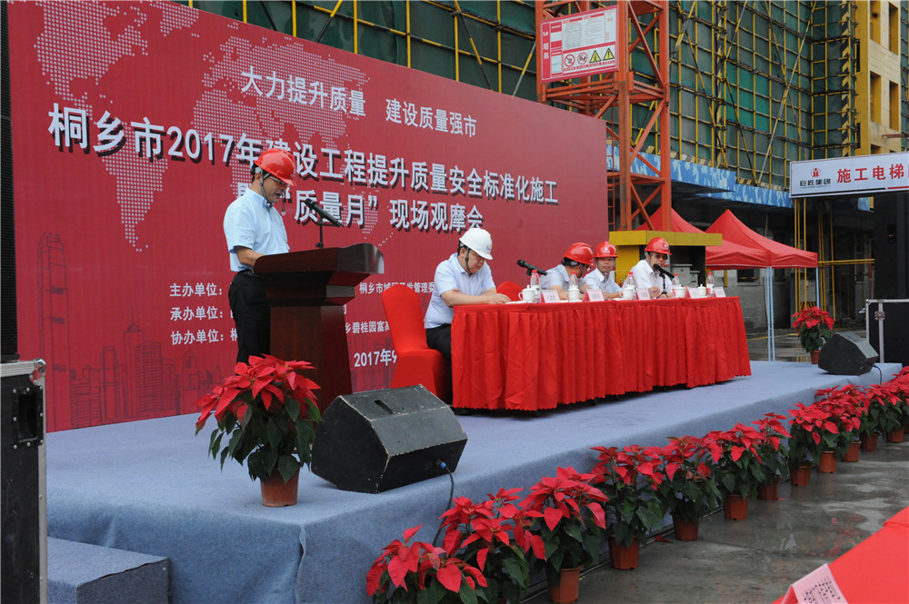 桐鄉(xiāng)市住房和城鄉(xiāng)規(guī)劃建設(shè)局局長(zhǎng)張富強(qiáng)在講話中對(duì)我集團(tuán)的工程安全標(biāo)準(zhǔn)化管理給予了肯定。張局表示,大家要共同努力,積極開展質(zhì)量提升行動(dòng),加強(qiáng)質(zhì)量培訓(xùn),創(chuàng)建質(zhì)量標(biāo)桿,促進(jìn)我們建筑行業(yè)的發(fā)展,扎實(shí)認(rèn)真地做好建設(shè)工程質(zhì)量安全工作,努力為全市經(jīng)濟(jì)建設(shè)和工程建設(shè)更快更好地發(fā)展創(chuàng)造和諧穩(wěn)定的社會(huì)環(huán)境,使我們桐鄉(xiāng)的建筑工程總體質(zhì)量水平再上一個(gè)新的臺(tái)階。