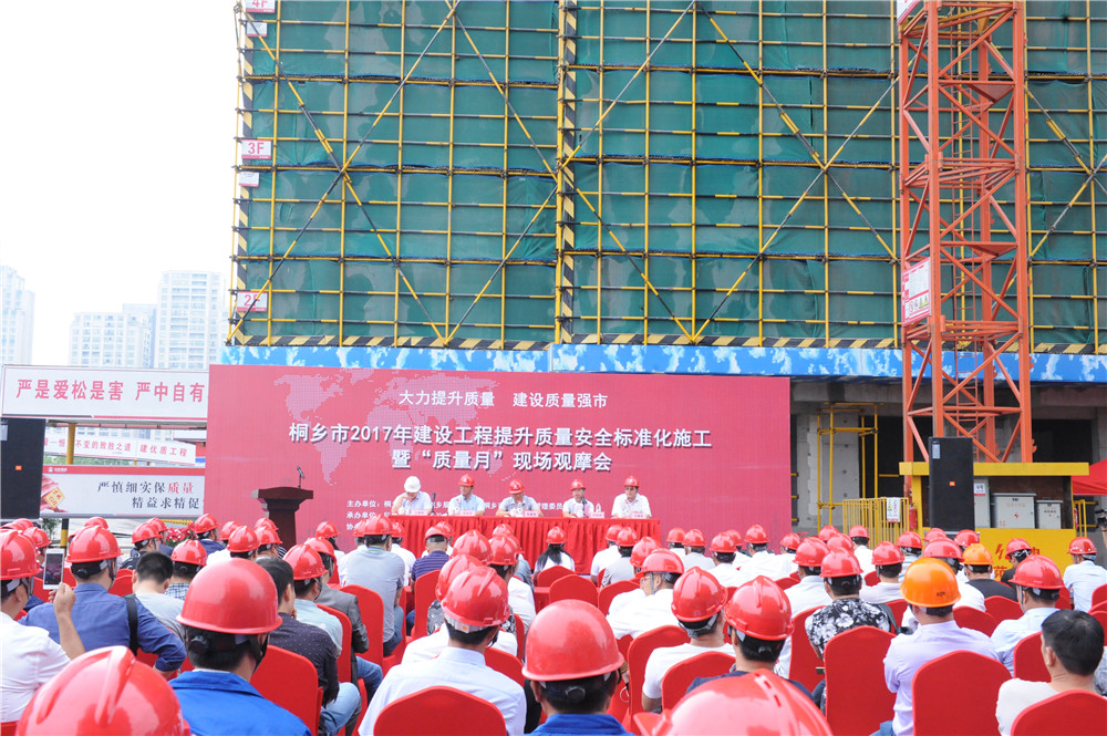 9月22日14時(shí),由桐鄉(xiāng)市住房和城鄉(xiāng)規(guī)劃建設(shè)局、桐鄉(xiāng)市城區(qū)開發(fā)管理委員會(huì)主辦,我集團(tuán)承辦的桐鄉(xiāng)市“2017年建設(shè)工程質(zhì)量安全標(biāo)準(zhǔn)化施工提升暨‘質(zhì)量月’現(xiàn)場(chǎng)觀摩會(huì)”在我集團(tuán)桐鄉(xiāng)碧桂園•梧桐華府項(xiàng)目施工現(xiàn)場(chǎng)隆重召開。桐鄉(xiāng)市住房和城鄉(xiāng)規(guī)劃建設(shè)局局長(zhǎng)張富強(qiáng),桐鄉(xiāng)市住房和城鄉(xiāng)規(guī)劃建設(shè)局黨委副書記許劍明,桐鄉(xiāng)市城區(qū)開發(fā)管理委員會(huì)副主任沈躍華,桐鄉(xiāng)市碧桂園富高置業(yè)有限公司項(xiàng)目總經(jīng)理王建軍,我集團(tuán)董事長(zhǎng)呂耀能出席本次會(huì)議。全市各建筑施工、監(jiān)理企業(yè)、部分房地產(chǎn)企業(yè)相關(guān)負(fù)責(zé)人,外地施工、監(jiān)理企業(yè)駐桐負(fù)責(zé)人,現(xiàn)場(chǎng)會(huì)主辦方桐鄉(xiāng)市住房和城鄉(xiāng)規(guī)劃建設(shè)局、桐鄉(xiāng)市城區(qū)開發(fā)管理委員會(huì)負(fù)責(zé)人及相關(guān)人員300余位同仁走進(jìn)項(xiàng)目施工現(xiàn)場(chǎng),300余位同仁走進(jìn)項(xiàng)目施工現(xiàn)場(chǎng),對(duì)項(xiàng)目的安全標(biāo)準(zhǔn)化工地、項(xiàng)目精細(xì)化管理、人性化服務(wù)等方面進(jìn)行了全面觀摩。