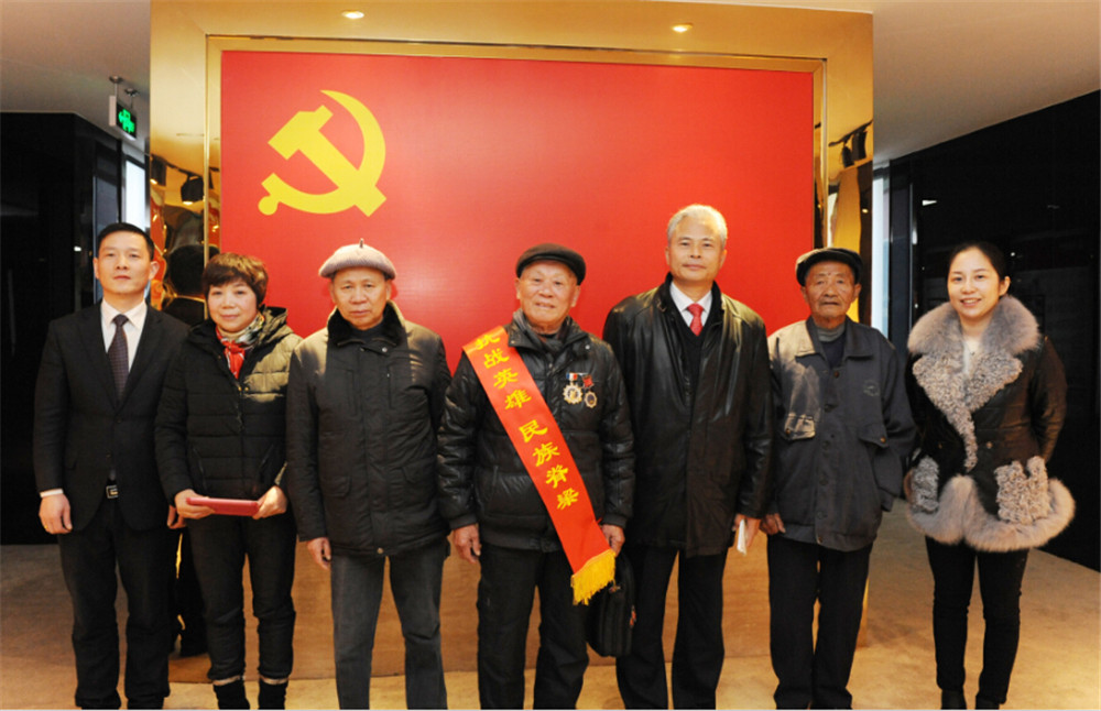 在黨建文化展示區(qū),老先生和戰(zhàn)友們專注地欣賞著我們的企業(yè)黨建文化,并詢問企業(yè)什么時(shí)候建立黨組織,有多少黨員等問題。當(dāng)老先生看到紅色黨員宣誓墻上的黨徽時(shí),他有些激動(dòng),拉著他的老戰(zhàn)友和家人們合影,他也告訴我們,看到黨徽,他就覺得好親切。作為一名老兵,幾十年來,黨在他心目中有著神圣的地位,有著與我們普通黨員不一樣的情懷。